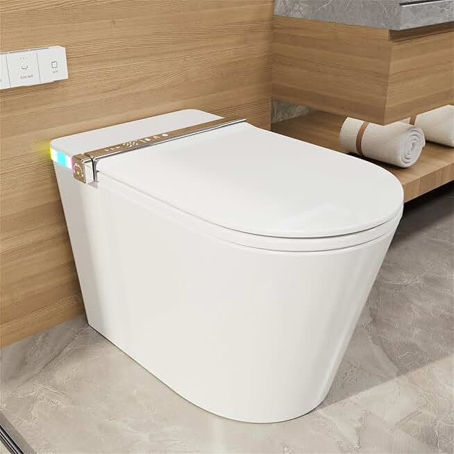 Smart Toilet with Tankless, Auto Open/Close Lid, Auto Flush, Heated Seat, Dryer, Ambient Light, User Memory Mode,1.32GPF Flush Power, LED Display, Side Control Knob & Wireless Remote