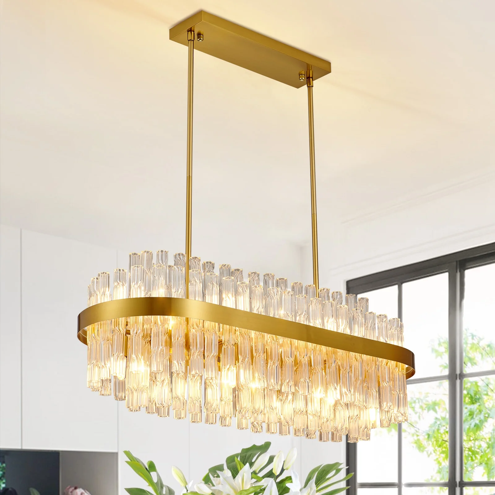 Wishomee Modern Crystal Chandeliers Gold Round 32 Inches(L80*W30cm) Crystal stick Chandelier Contemporary Ceiling Pendant Light Fixture for Living Dining Room Kitchen Island G9 x 12