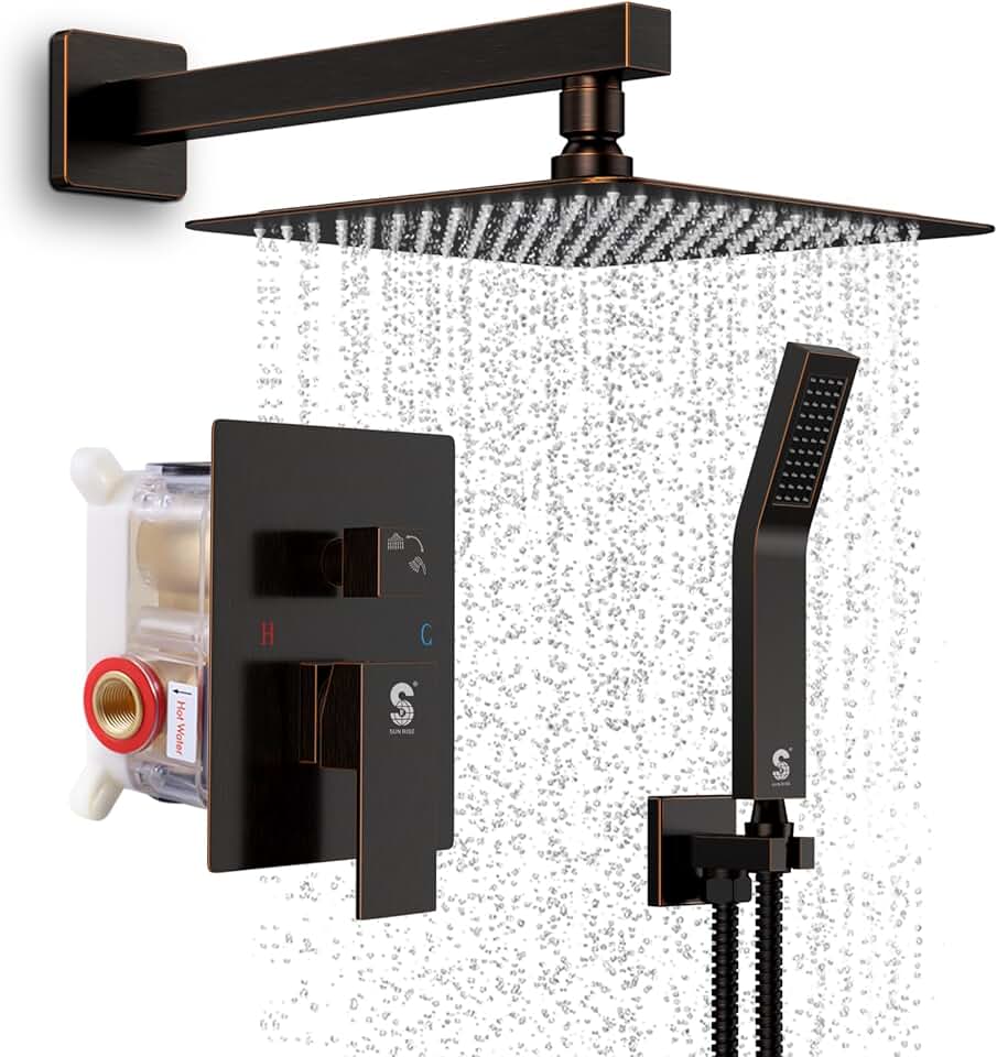 SR SUN RISE Oil Rubbed Bronze Shower System 10 Inches Square Shower Head with Handheld, Waterfall Showerhead, All Metal Shower Faucet Trim Repair Kits (Contain Shower Valve)
