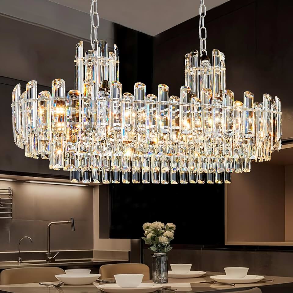 Modern Crystal Chandeliers,12-Lights Chandelier Light Fixture, 3-Tier Luxury Crystal Pendant Ceiling Light Fixture for Dining Living Room Kitchen Island L35.4''