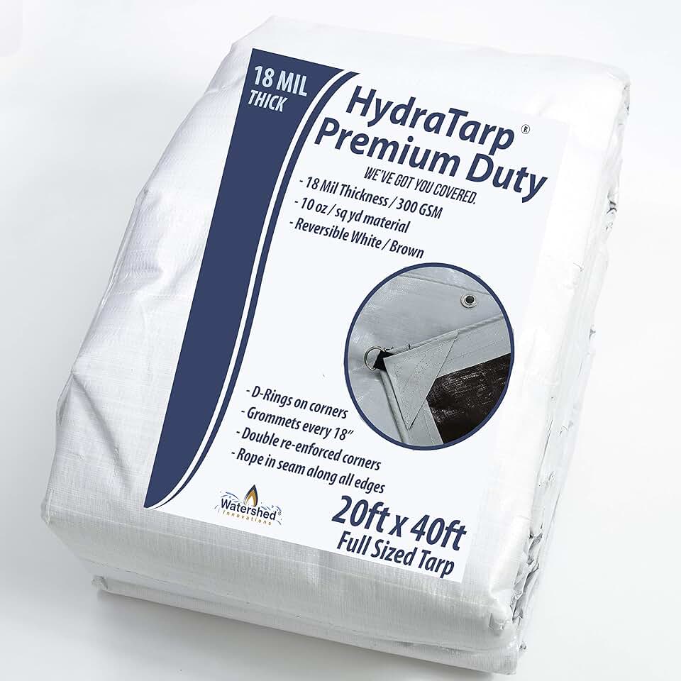 Watershed Innovations HydraTarp 18 mil Heavy Duty White/Brown Waterproof Reversible Tarp with D-Rings, 20 ft by 40 ft