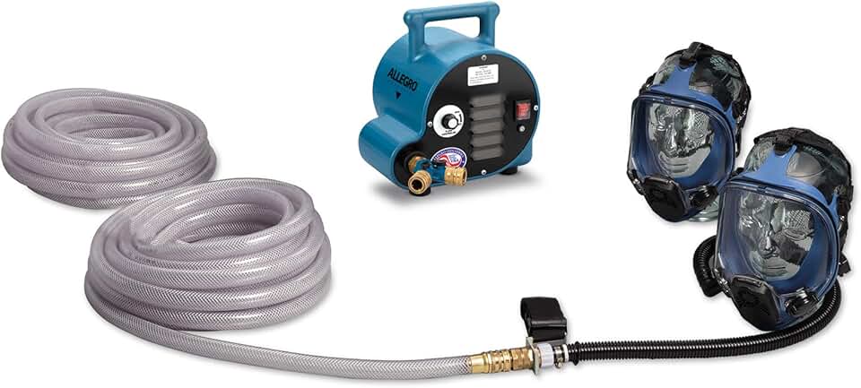 2-Worker Full Mask Breathing Air Blower Respirator System w/ 50' Hose