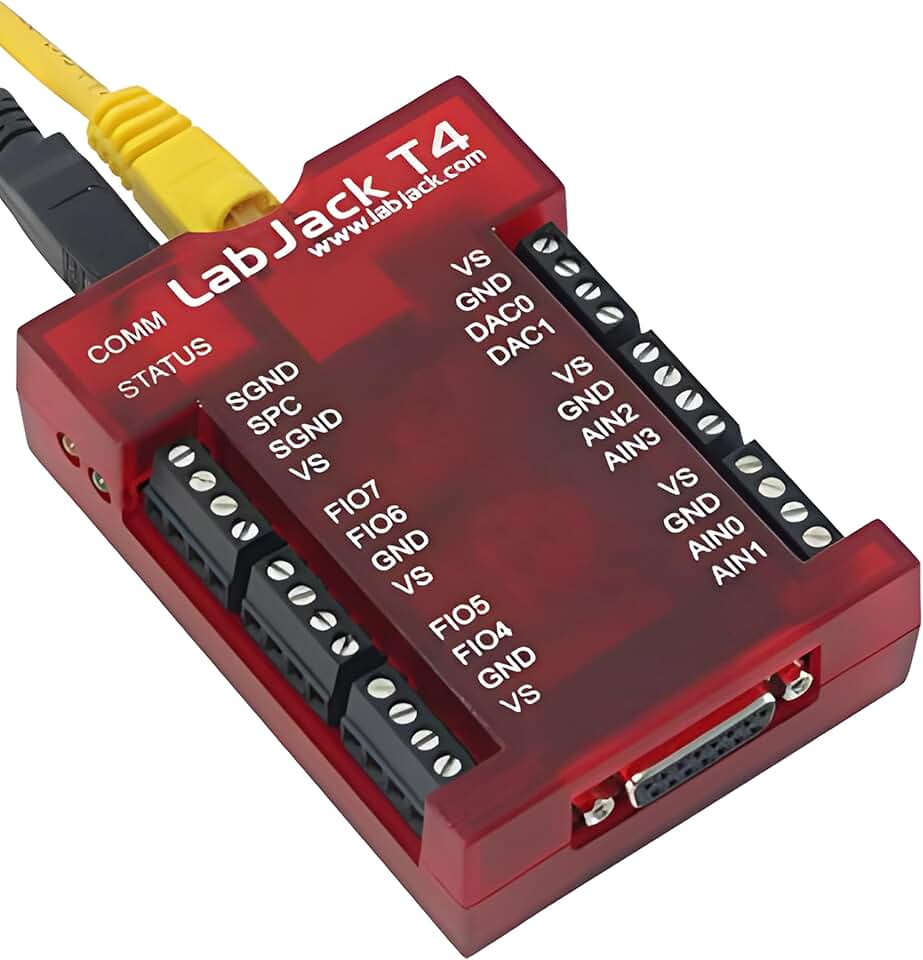 T4-USB Data Logger or Ethernet Multifunction DAQ Device with up to 12 Analog inputs or 16 Digital I/O, 2 Analog outputs (10-bit), and Multiple Digital counters/timers.