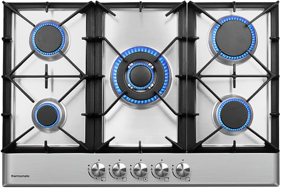 thermomate 30 Inch Gas Cooktop, Built In Gas Rangetop with 5 High Efficiency Burners, NG/LPG Convertible Stainless Steel Gas Stove Top with Thermocouple Protection, 120V AC