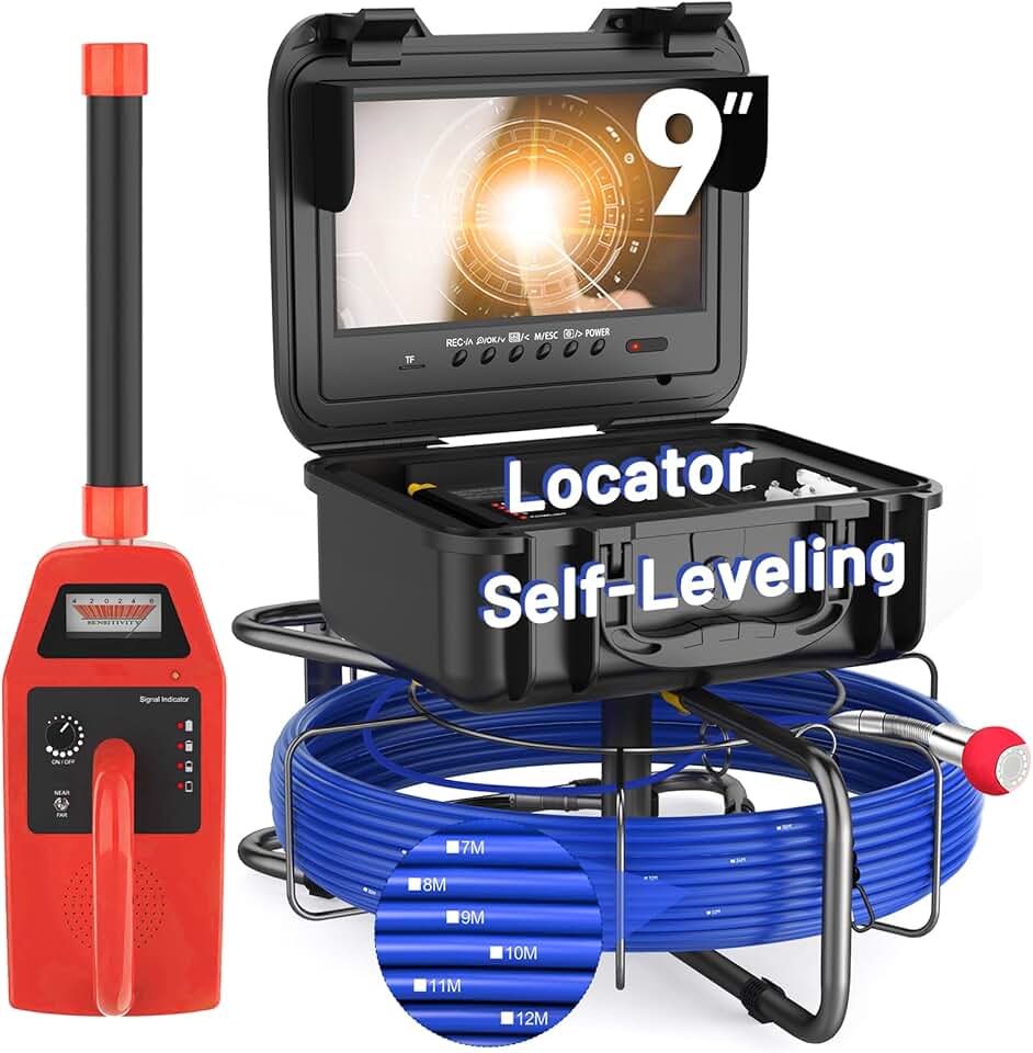 Anysun Sewer Camera with Locator Set, Self-Leveling, 7mm Cable with Depth Marker, IP68 Waterproof Plumbing Endoscope Drain Snake Camera with 9'' Color Screen, 12pcs Light, Recorder with 32GB(250FT)…