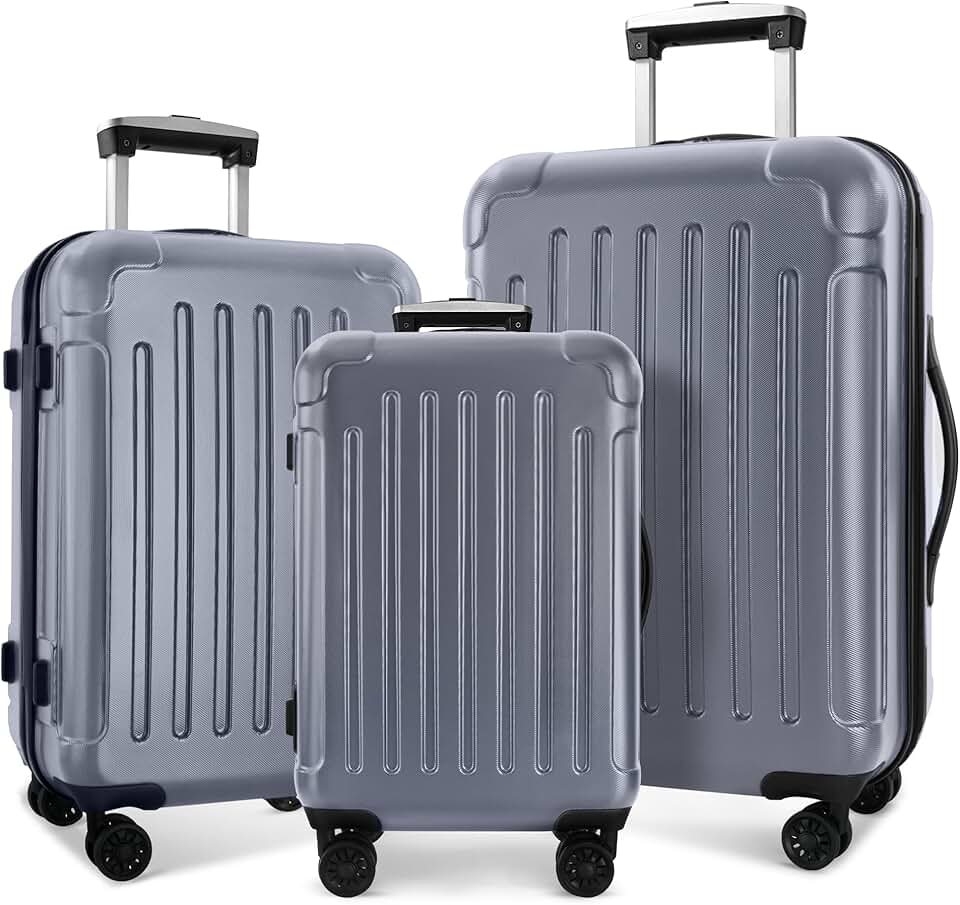 Hardside Expandable Spinner Luggage, 3 Piece Luggage Sets with Spinner Wheels, Lightweight Travel Luggage with Telescopic Handles for Travel, Hardside Expandable Luggage 20"/24"/28" grey