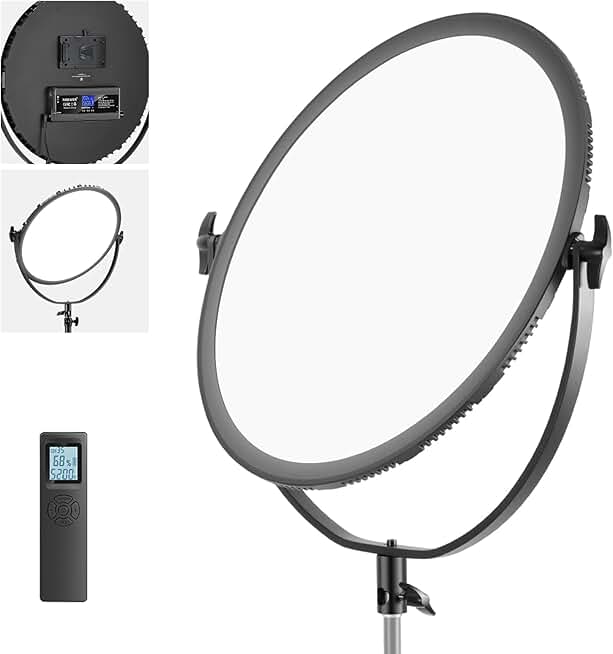 Neewer LED Bi-Color Studio Round Lighting, Ultra Thin Studio Edge Flapjack Light, 18''/45.5cm 70W Dimmable Portrait Light with AC Adapter/2.4G Wireless Remote (Battery/Light Stand Not Included)