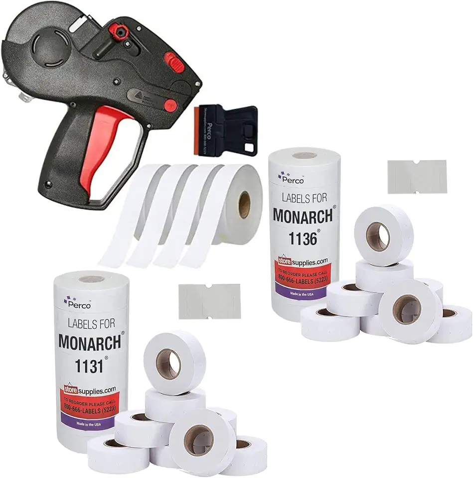 Monarch 1131 Pricing Gun with Labels Starter Kit: Includes Price Gun, 10,000 White Pricing Labels and Inker Bundled w White Pricing Labels for Monarch 1131 and 1136 Pricing Guns