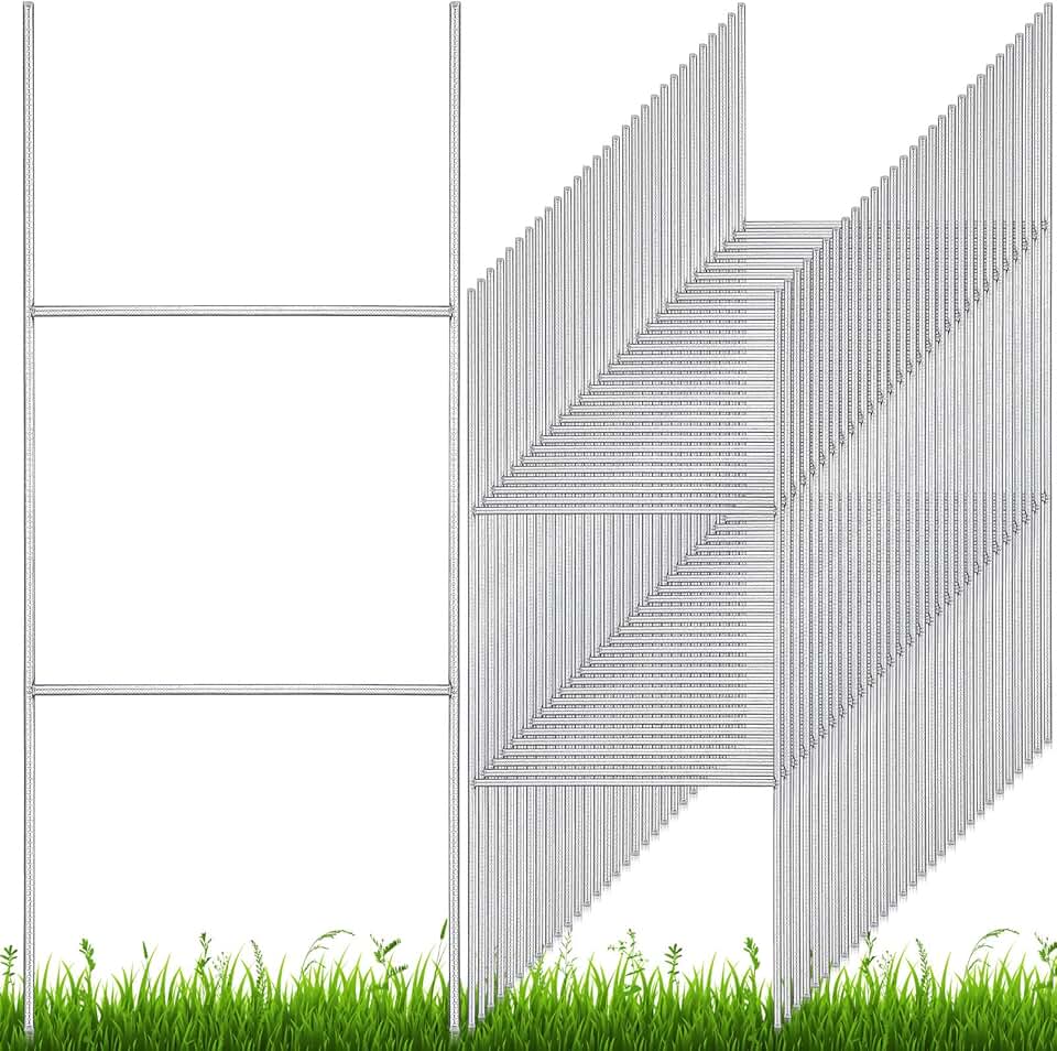 200 Pcs H Stakes for Yard Signs 24'' x 10'' Metal Heavy Duty H Frame Wire Stakes Weatherproof Metal Sign Holder for 4mm 5mm Corrugated Signs Advertising Board Guidepost Yard Halloween Decor
