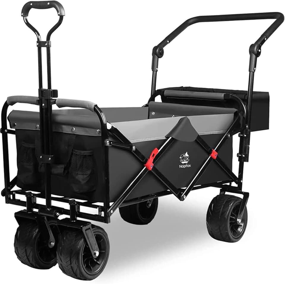 Collapsible Heavy Duty Beach Wagon Cart All Terrain Beach Wheels Large Capacity Outdoor Folding Utility Camping Garden Cart Brake for Beach Camping Shopping (Black&Gray