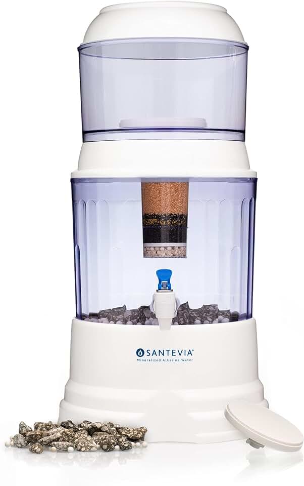 Santevia Gravity Water System Filter | at Home Water Filter That Makes Water Alkaline and Adds Minerals | Chlorine and Fluoride Filter (Countertop Model)
