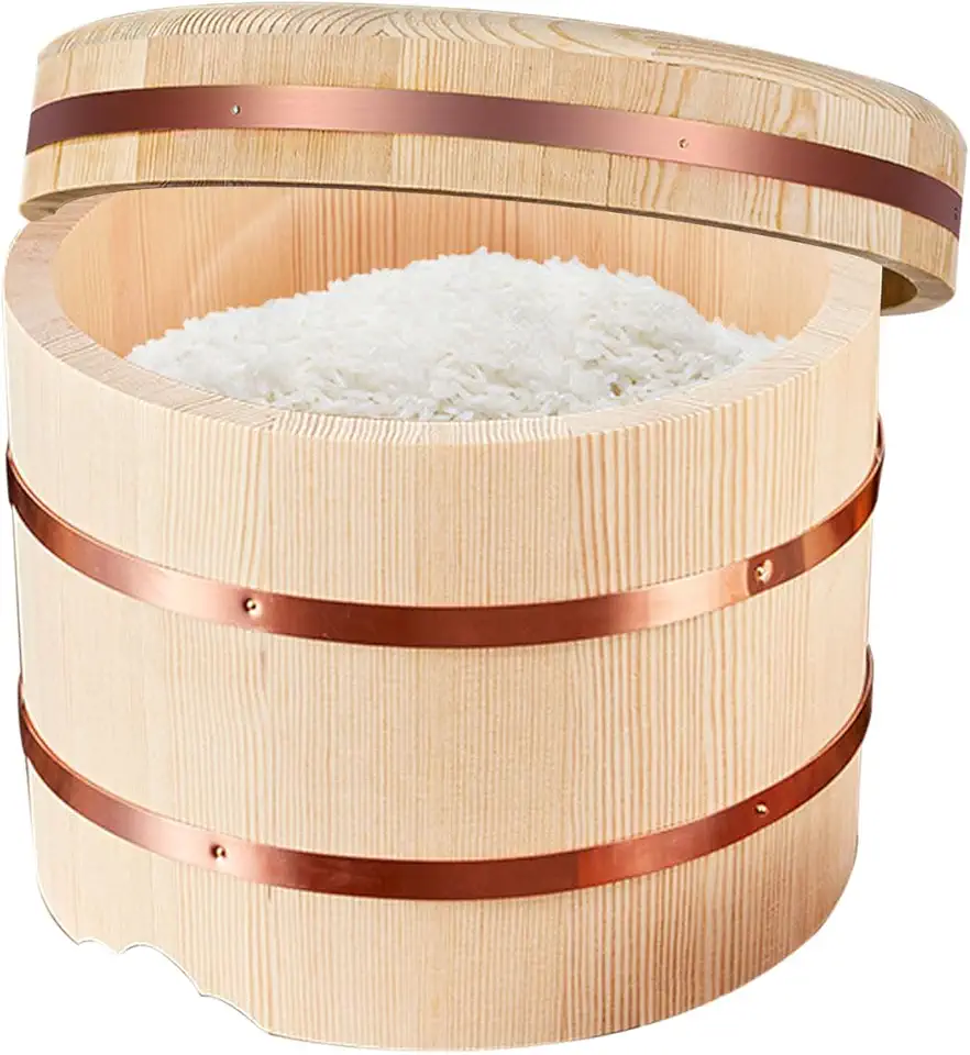 Wooden Rice Bucket Sushi Wooden Barrel, Japanese Cuisine Sushi Bucket Food Storage Container with Lid Kitchen Cooking,Large