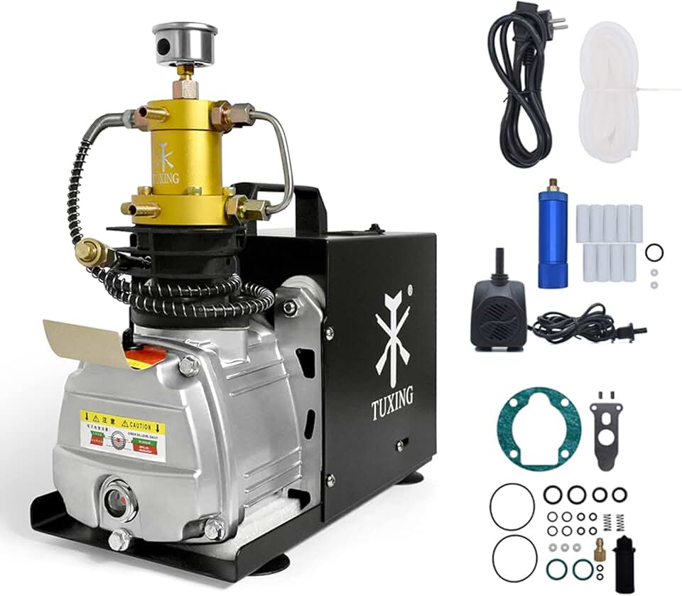 TUXING Pcp Air Compressor,4500Psi/30Mpa/300Bar Scuba Compressor, Manually Shutoff Electric Compressor with Water/Fan Dual Cooling System for Pcp Air Rifle, Scuba Tank Charging
