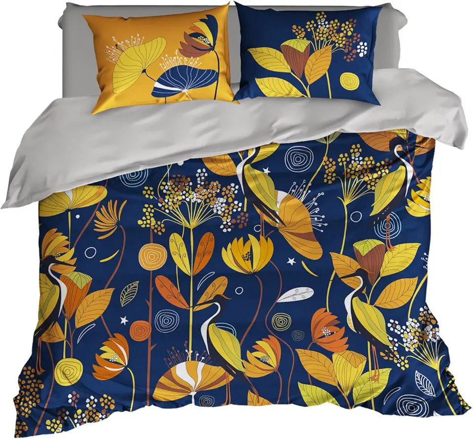 Modern Botanical Duvet Cover, Floral Bedding Set, 460 Thread Count Bohemian Sheet Set, B-232 (Queen Set 95x87)