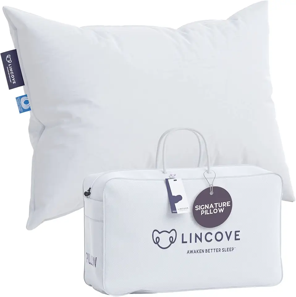 Lincove Signature 100% Natural Canadian White Down Luxury Sleeping Pillow - 800 Fill Power, 500 Thread Count Cotton Shell, Made in Canada, Standard - Medium, 1 Pack