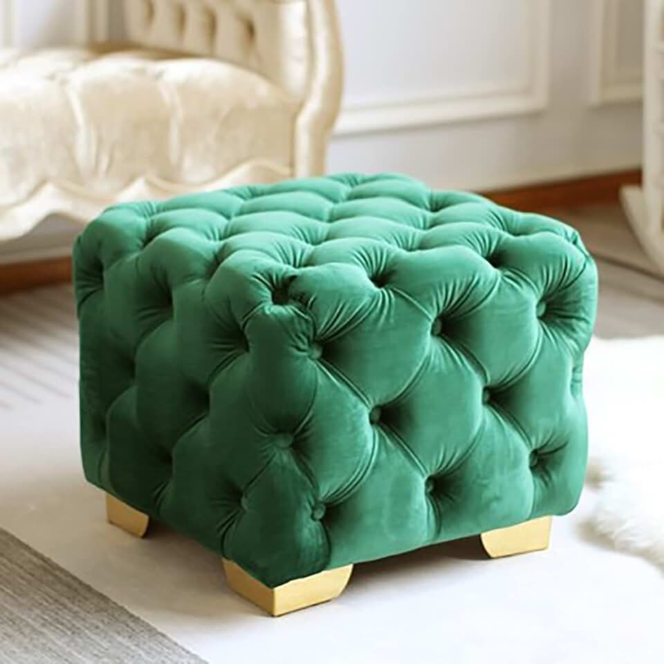 Square Tufted Ottoman,Luxury Velvet Ottoman,Soft Upholstered Foot Rest Decorative Furniture Footstool for Living Room Bedroom Entryway-Green 50x50x40cm(20x20x16inch)