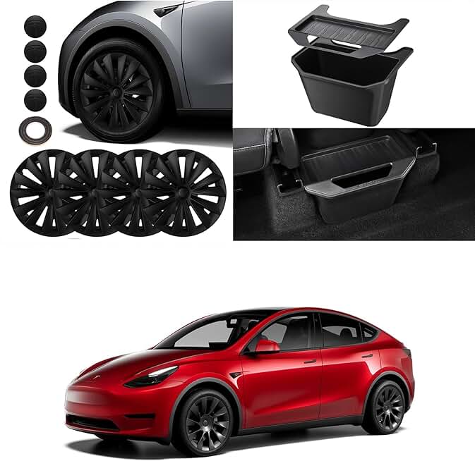 BASENOR Tesla Model Y Wheel Covers 19 Inch and Model Y Rear Center Console Organizer