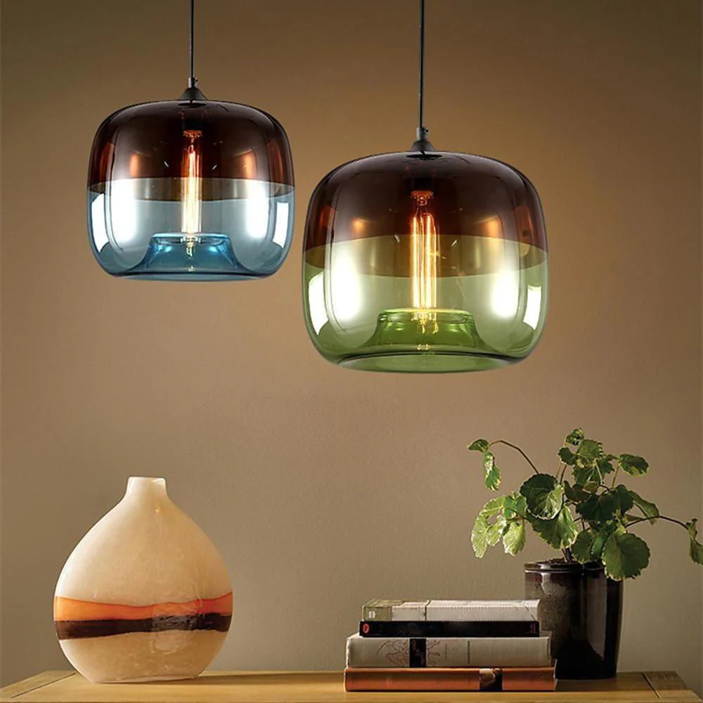 Multi Colored Glass Pendant Light Artistic Globe Dining Room Light