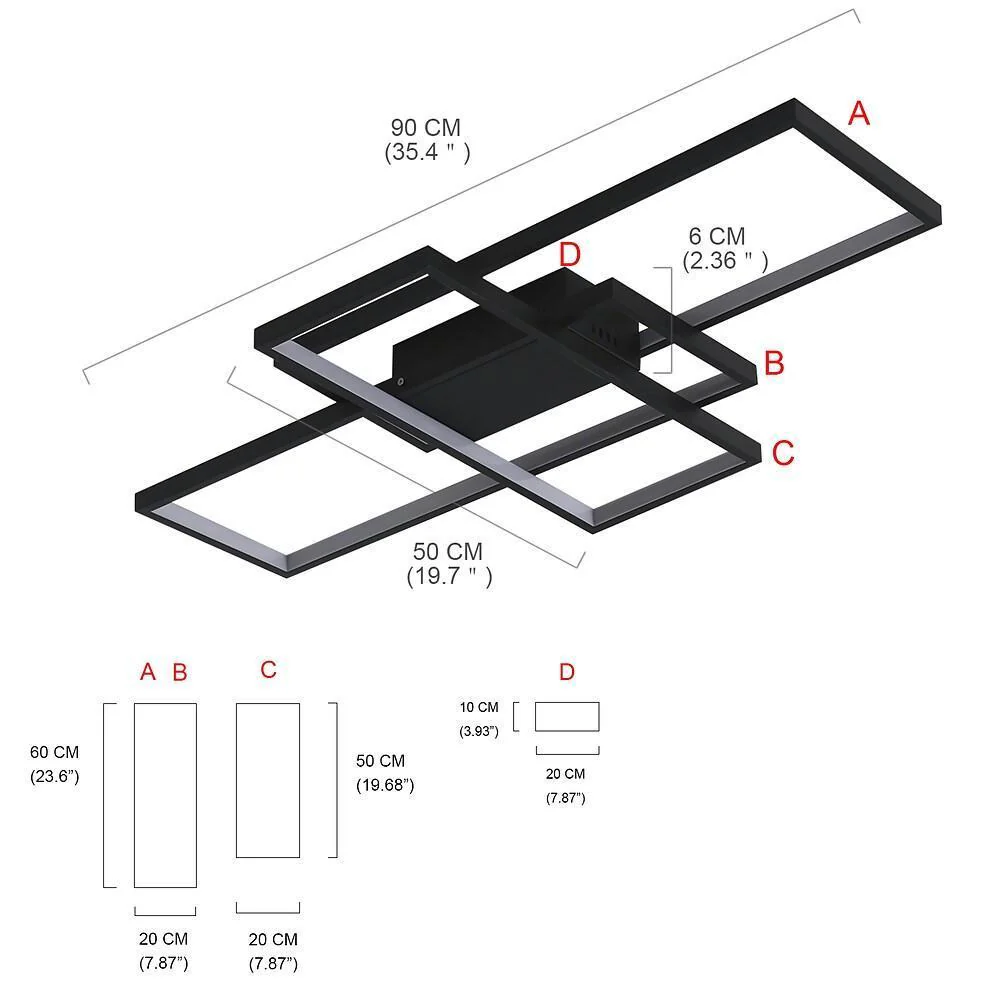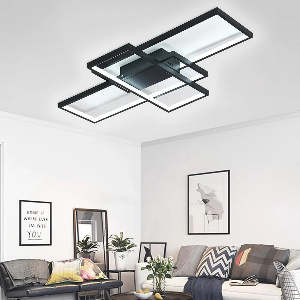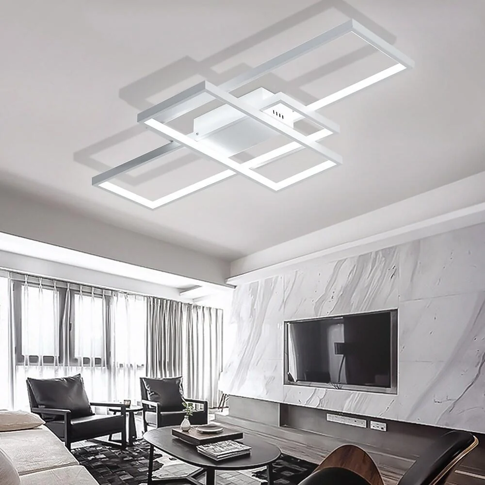 Multi Rectangle Large Flush Mount Ceiling Light with 3 Integrated Tiered Lights