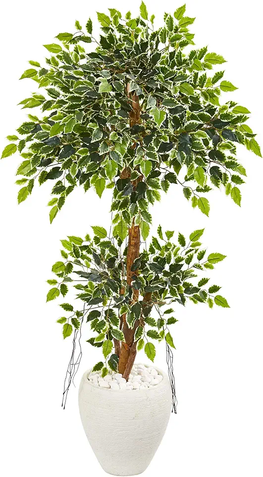 Nearly Natural 56in. Variegated Ficus Artificial Tree in White Planter