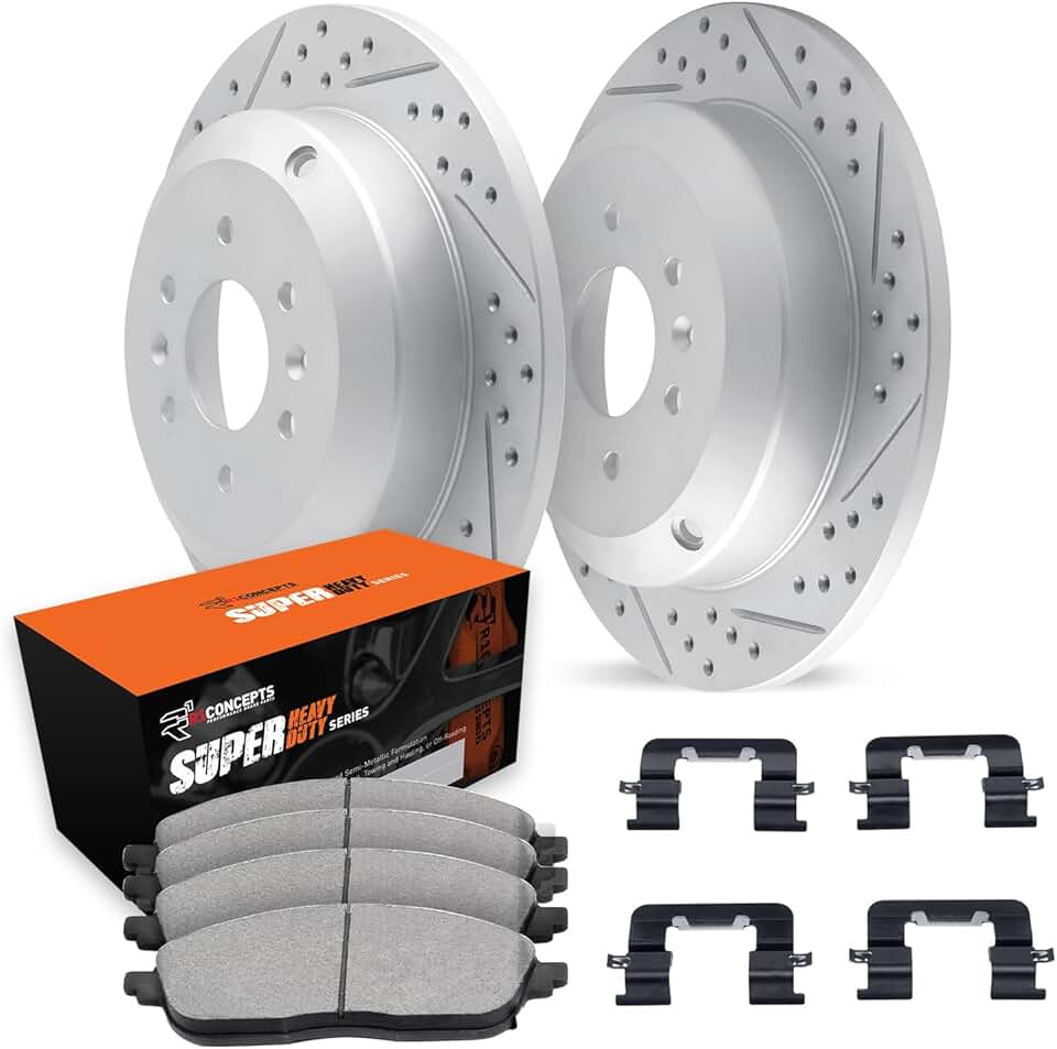 R1 Concepts Rear Brake Rotor Kit |Brake Rotors| Brake Disc |Drilled and Slotted||fits 2009-2010 Kia Borrego