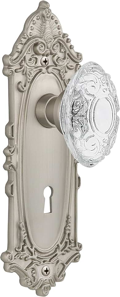 Nostalgic Warehouse 754098 Interior Mortise Plate with Crystal Victorian Knob, Backset Size: 2.25", Satin Nickel