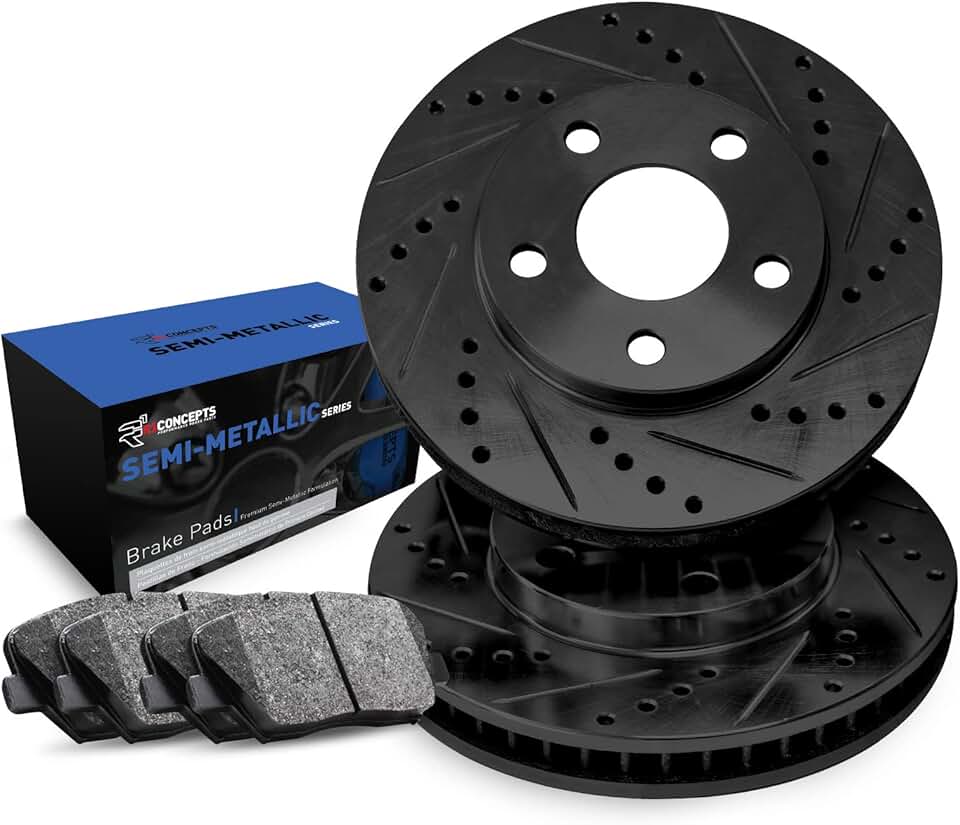 R1 Concepts Front Brakes and Rotors Kit |Front Brake Pads| Brake Rotors and Pads| Semi Metallic Brake Pads and Rotors |fits 2008-2013 BMW 128i