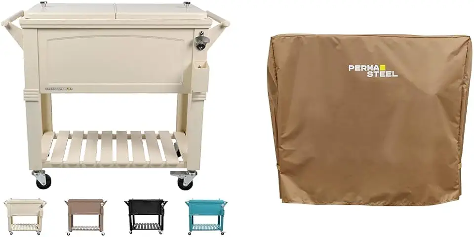 Permasteel 80-Qt Antique Patio Cooler Bundle with Universal Cover