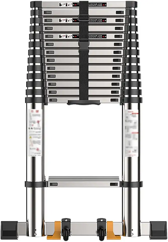 Extendable Ladders Folding Ladder Aluminum 2m/3m/4m/5m Telescopic Extension Ladders with Stabilizer Bar, for RV and Household Daily or Outdoor use, Hold 330lbs Capacity