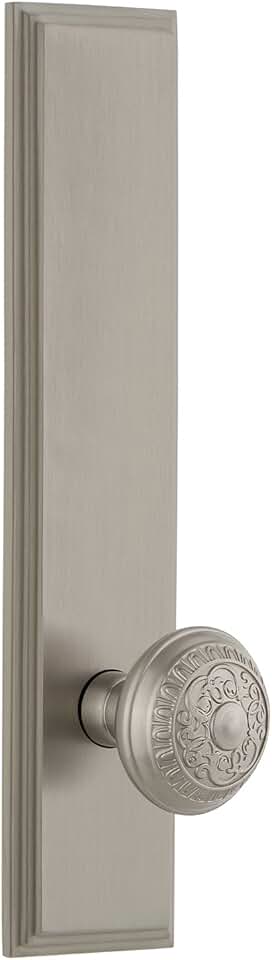 Grandeur 815417 Hardware Carre' Tall Plate Windsor Knob Size, Privacy-Backset: 2.75", Satin Nickel