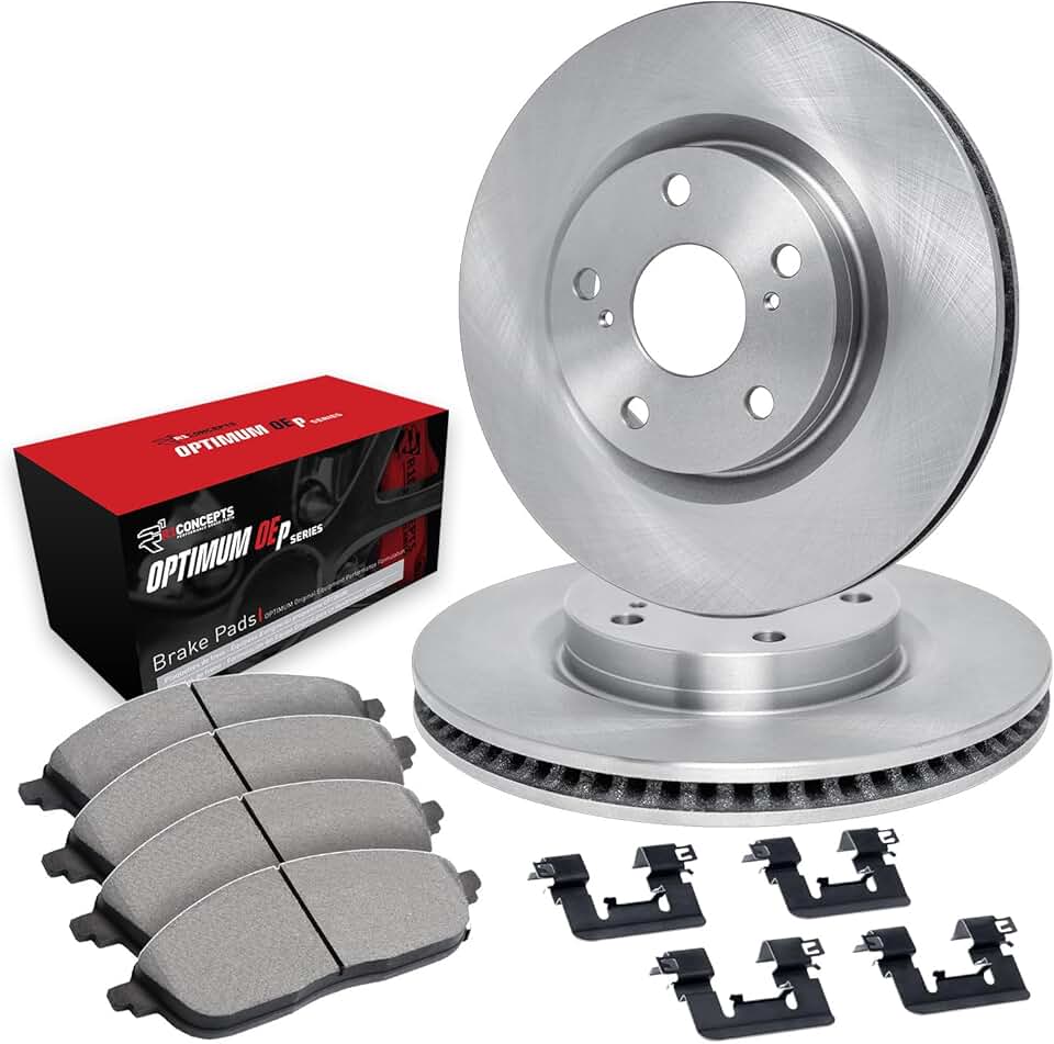 R1 Concepts Front Brakes and Rotors Kit |Front Brake Pads| Brake Rotors and Pads| Optimum OEp Brake Pads and Rotors |Hardware Kit|fits 2007-2011 Ford Mustang