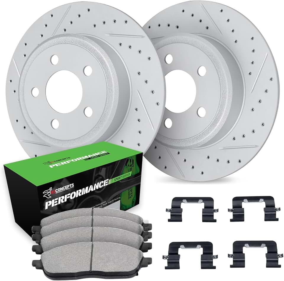 R1 Concepts Rear Brakes and Rotors Kit |Rear Brake Pads| Brake Rotors and Pads| Peformance Sport Brake Pads and Rotors |Hardware|fits 1997-1999 Lexus ES300; Toyota Camry, Solara