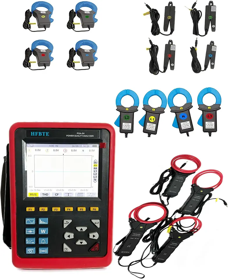 3 Phase Energy Power Quality Analyzer Logger Tester for Measuring AC with Current True RMS 10mA to 6000A Four Groups Current Sensor 10A+100A+1000A+6000A Full Set CT Size Ф8mm+Ф40mm+Ф68mm+Ф300mm