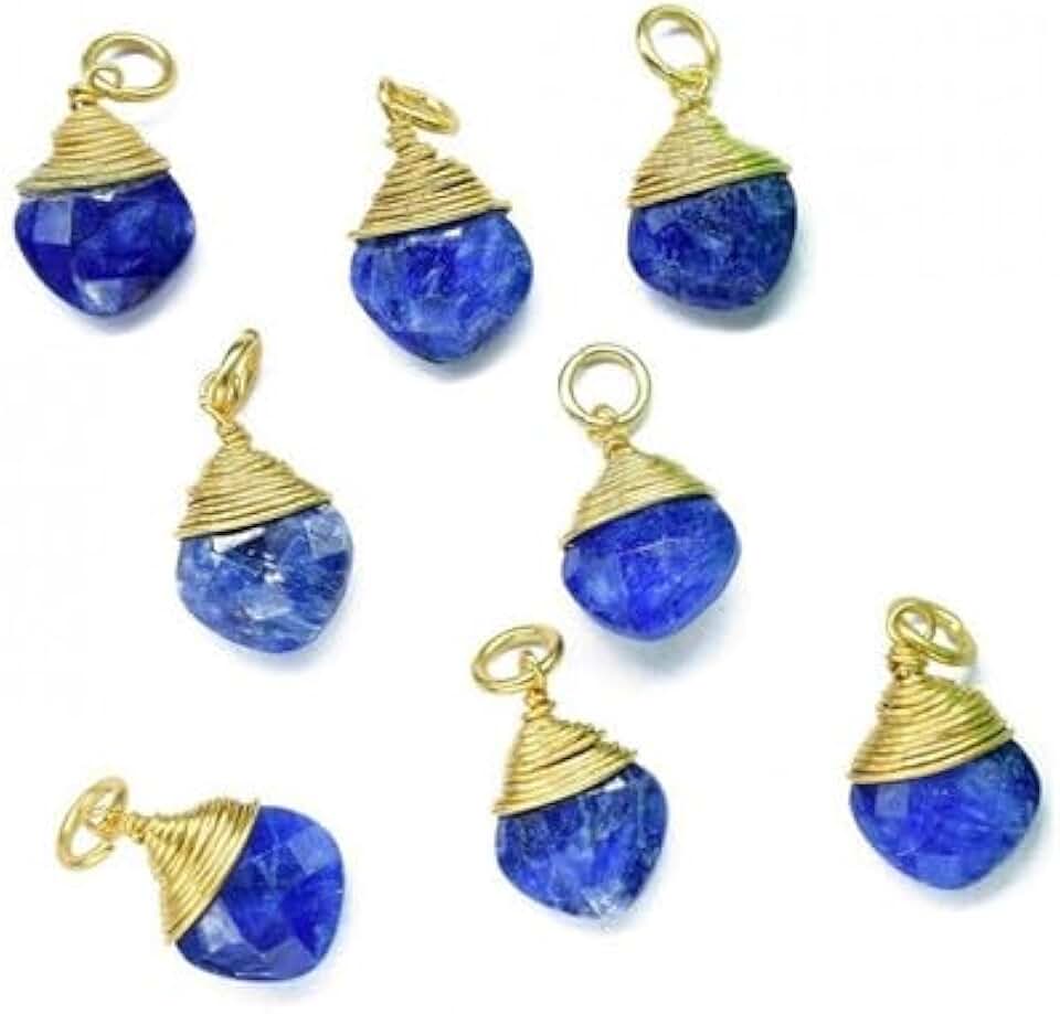 Hand Crafted 5Pcs.Sapphire Wire Wrapped Necklace Charm,Jewelry Making Blue Sapphire Wire Wrapped Connector, Square Gemstone Pendants,Single Loop Connectors YO-NECK-2423