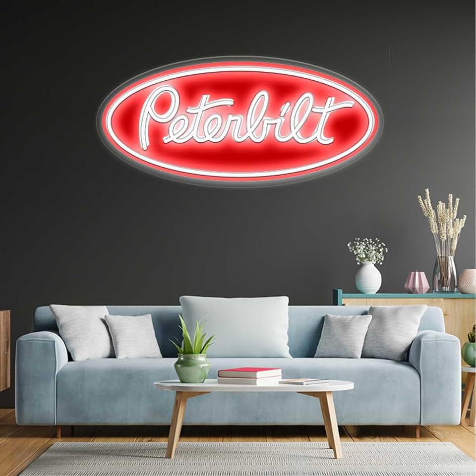 Peterbilt Semi-Truck Emblem 9 Inches Tall & 20 Inches Wide Dimmable Neon Sign