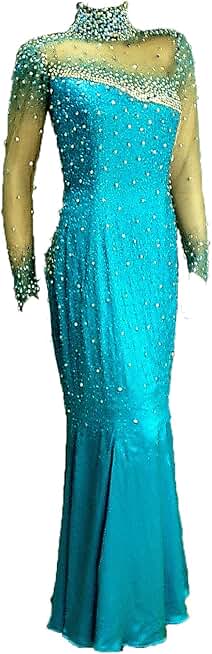 Custom Made Silk Charmeuse Long Sleeve Gown, Turquoise, Stoned, Pageant