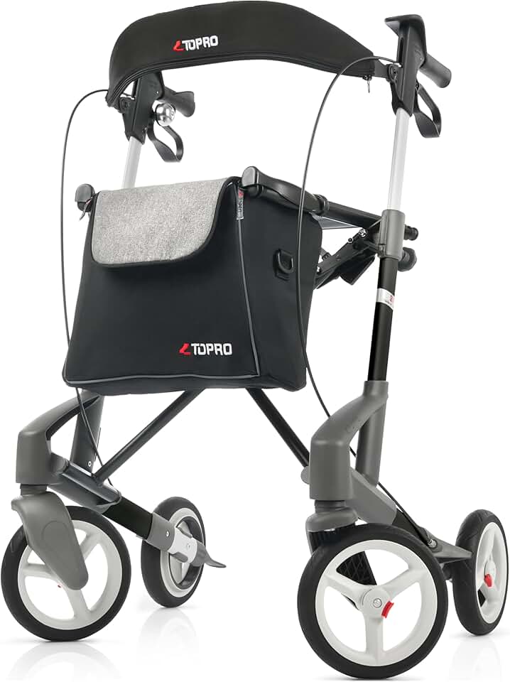 TOPRO Heavy Duty Walker with Seat for Seniors – 4 Wheel Walker Lightweight Rollator Walker with Seat Back Support, Adjustable Height Rolling Walker with Seat and Brakes, Folding Walker 330 lbs, Black