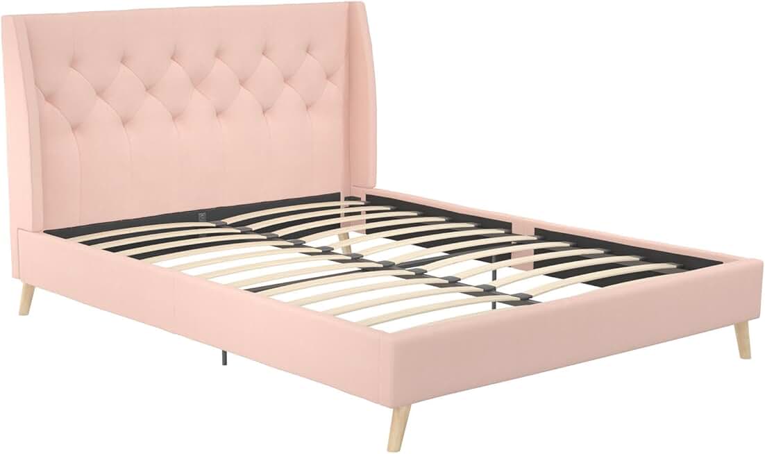 Novogratz Her Majesty Tufted Upholstered Bed Frame, Full, Pink Linen