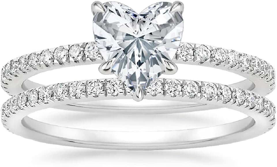 Generic Moissanite Heart Cut Twisted Bridal Ring Set, 3 Carats, White Gold, Customizable Metal Options