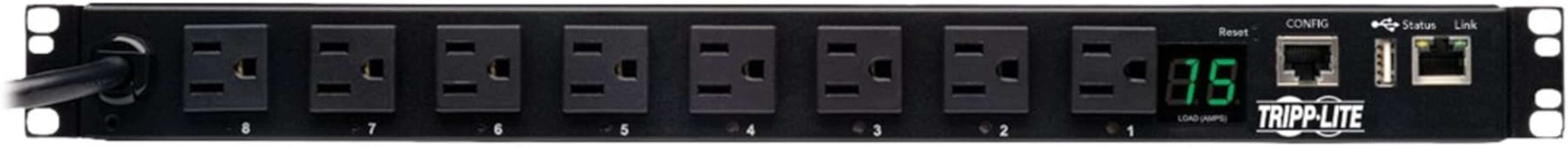 Tripp Lite 1.4kW Switched PDU, 120V, 15A, 8 5-15R, 5-15P, LX Platform Interface, 12ft Cord, 1URM TAA, 2 Year Warranty (PDUMH15NET2LX)