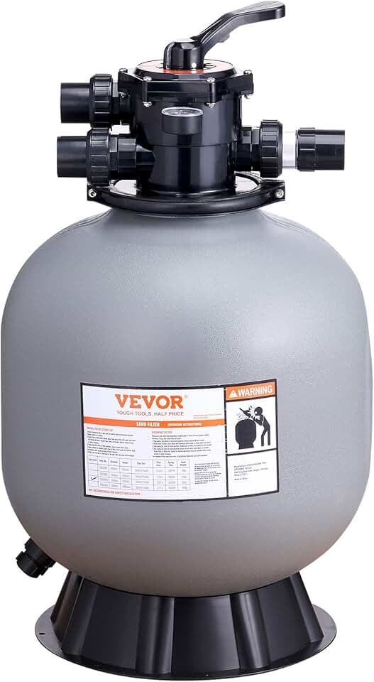 VEVOR 2504BX 22-inch, Up to 55 GPM Flow Rate, Above Inground Swimming Pool Sand System with 7-Way Multi-Port Valve, Filter, Backwash, Rinse, Recirculate, Waste, Winter, Closed Functions, Grey