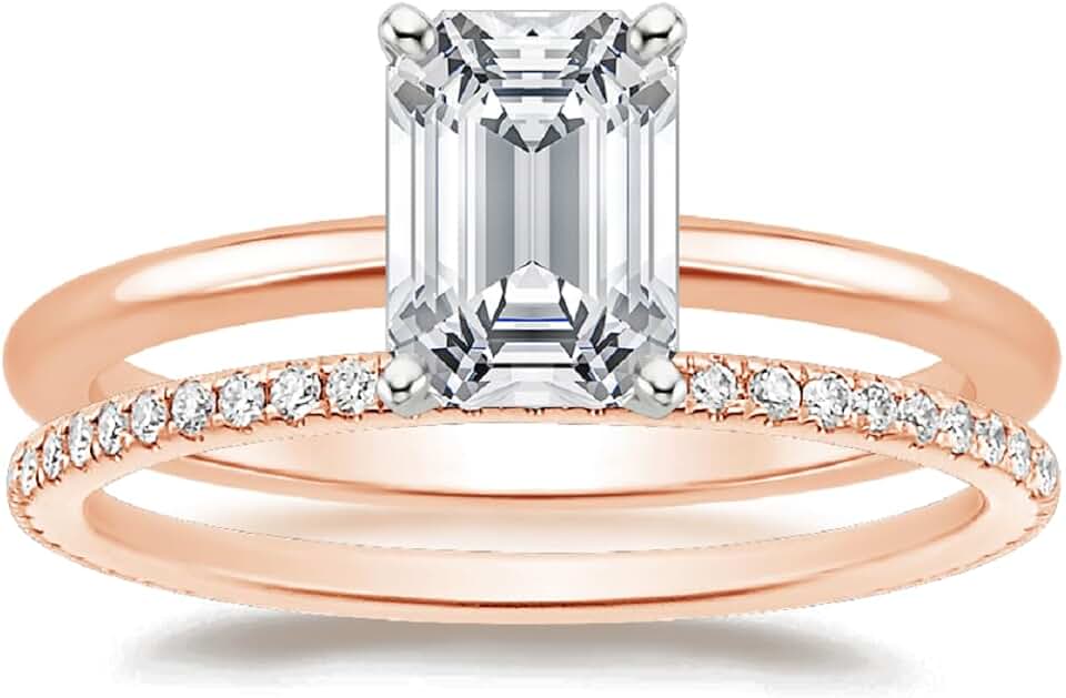 Generic Emerald Cut Moissanite Engagement Ring Set, 3 Carats, Twisted Design, Customizable Metal Options, 7