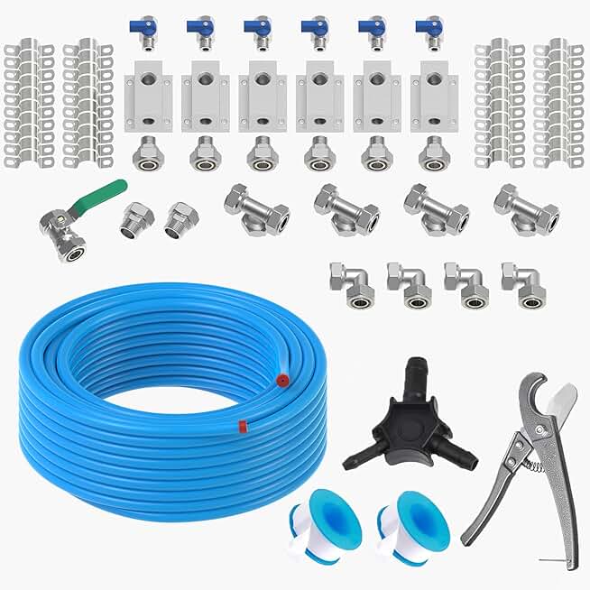 Compressed Air Piping System 3/4 inch x 200 Ft Tubing, Shop Air Line Kit for Garage Air Compressor Accessories Kit with Blue HDPE-Aluminum Hose and Aluminum Outlet Blocks 200Psi