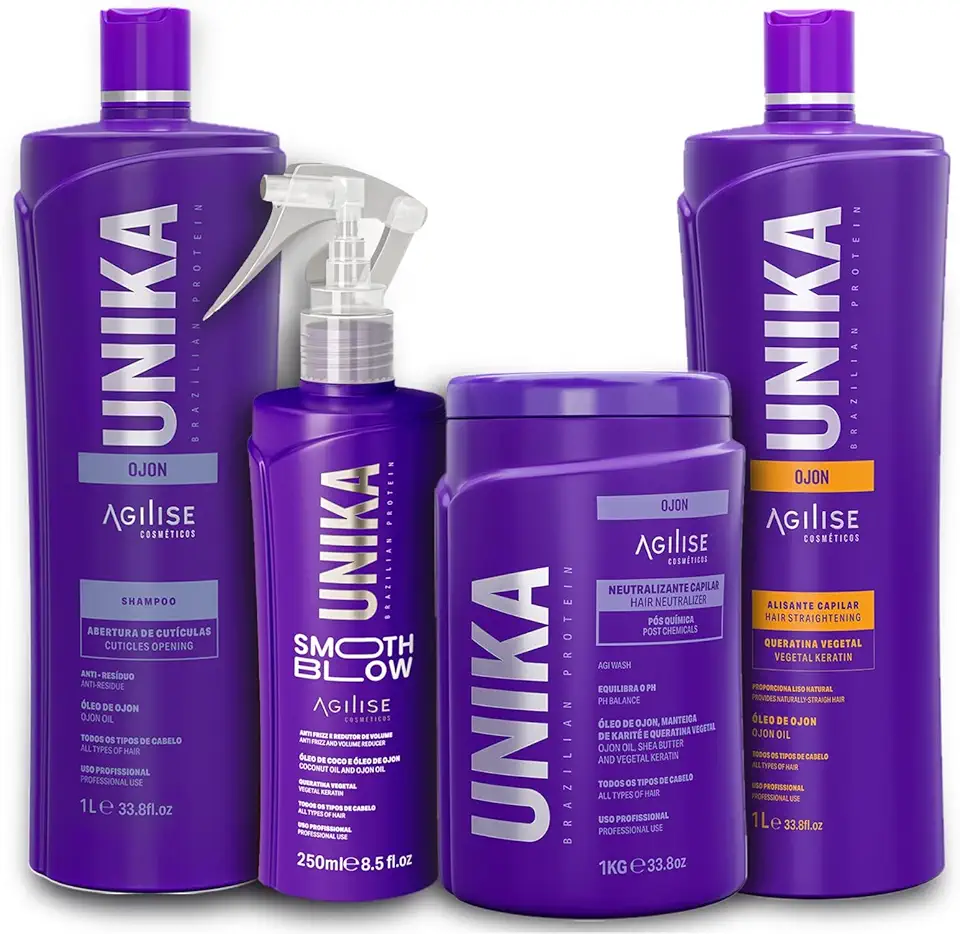 "Unika Ojon Hair Straightener: Keratin Treatment, Anti Frizz Care. Deep Hydration, Vegan Formula. Complete Set: Ojon Anti Residue Shampoo, Hair Mask. Clarifying, Repairing, and Frizz Control.