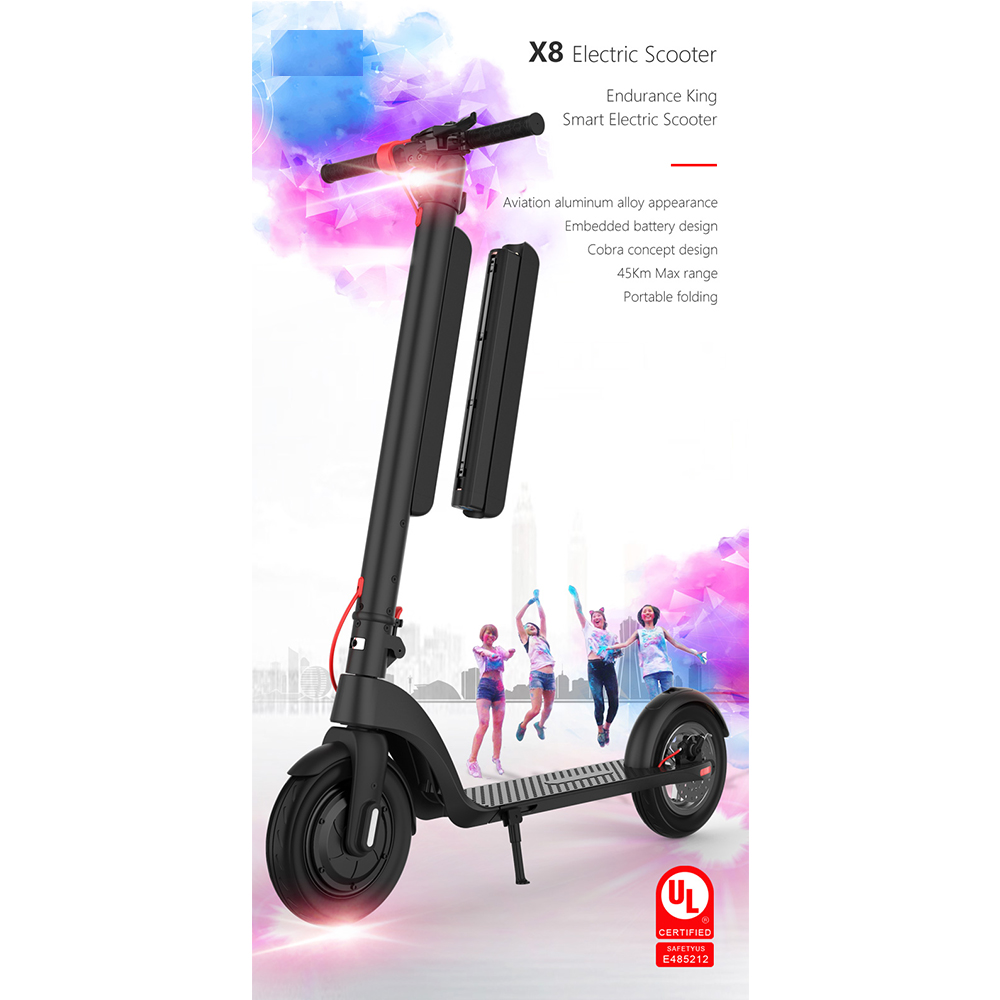 Xhy Electric Scooter for Adults 350W Motor with Bright Headlight and Taillight 10'' Solid Tire Foldable 27.9 Miles Range Motorized Scooters 5 Walking Speed Commuter Mopeds Black