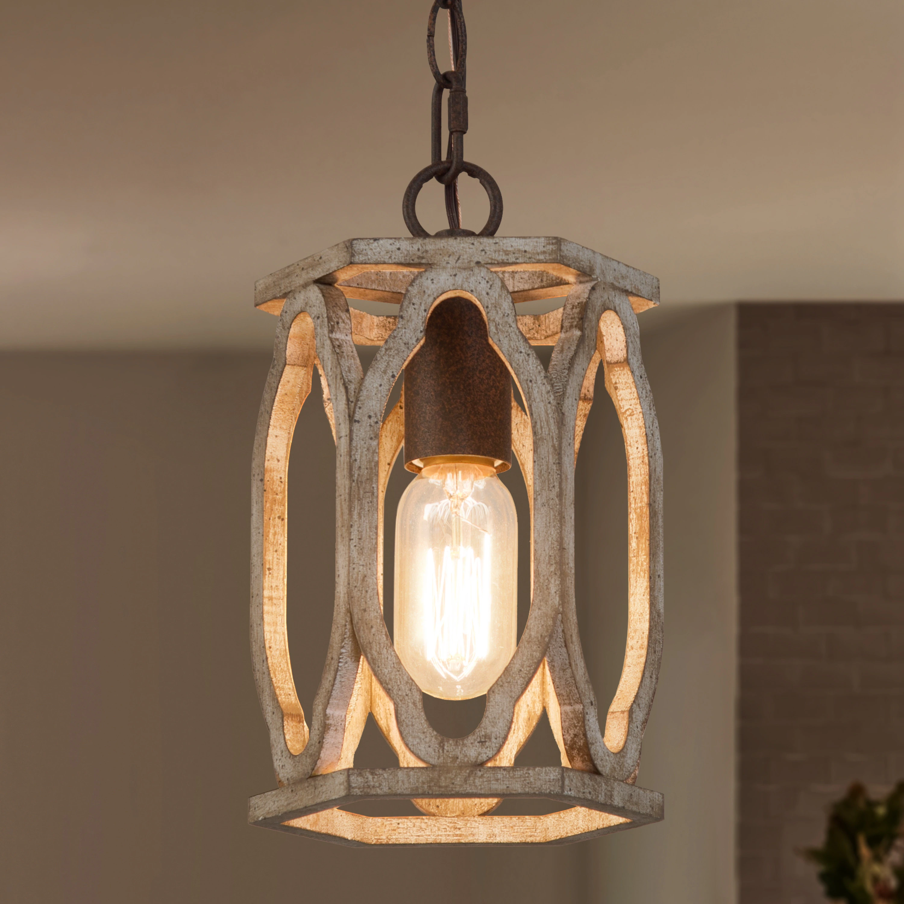 Clovy Farmhouse 1-Light Wood Lantern Pendant Lights for Kitchen Island
