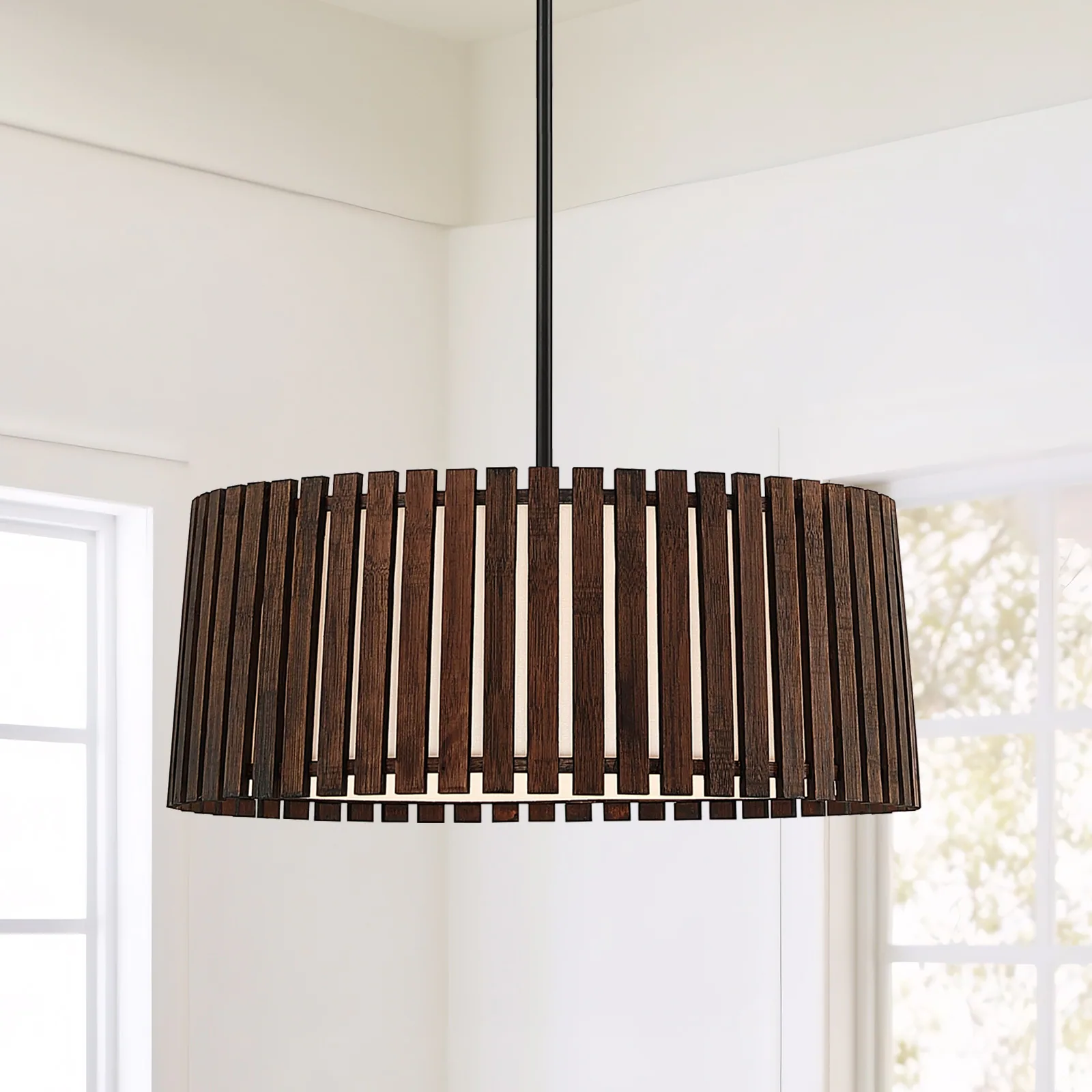 Wade 4-Light Drum Bamboo Chandelier with Black Canopy