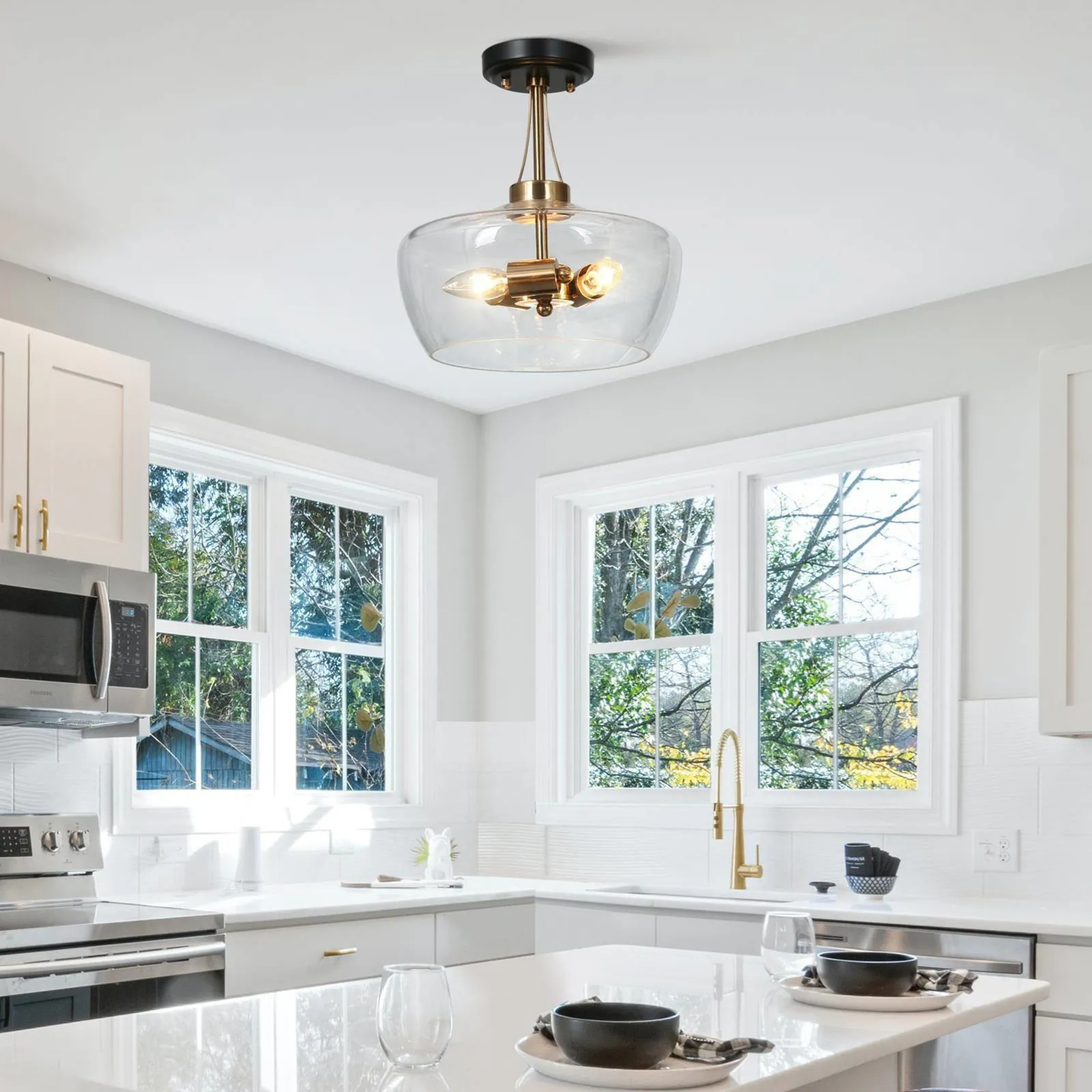 Modern Black Gold 3-light Semi-Flush Mount Ceiling Lights Glass Chandelier