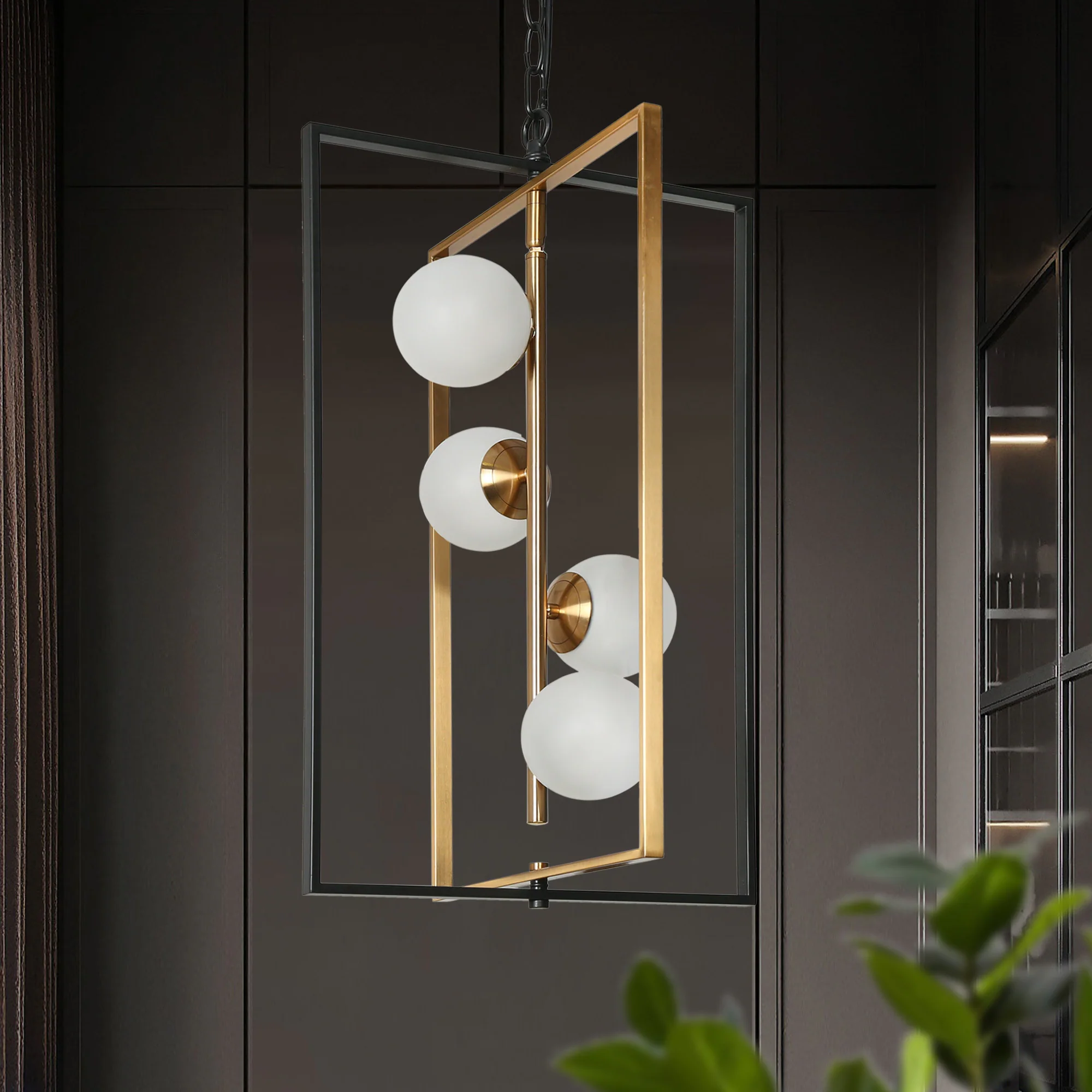 Icey Modern Black Gold LED Chandelier 4-Light Geometric Pendant Lights for Dining Room