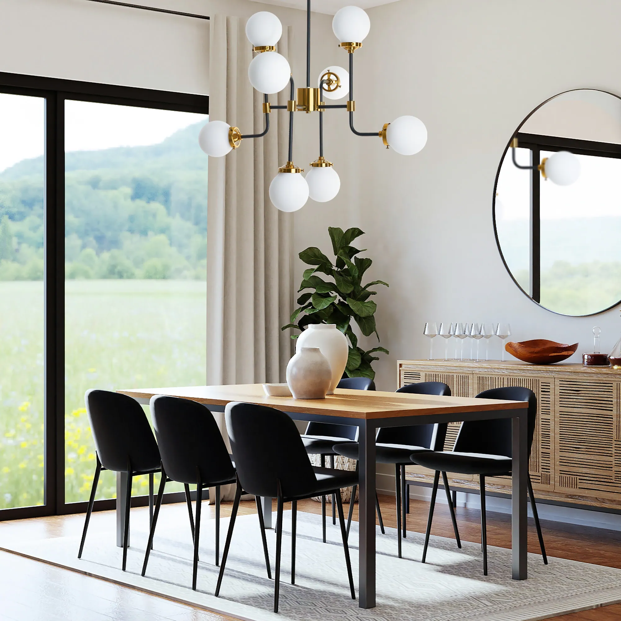 8 Light Modern Sputnik Chandelier with Opaline Shades, Black & Gold